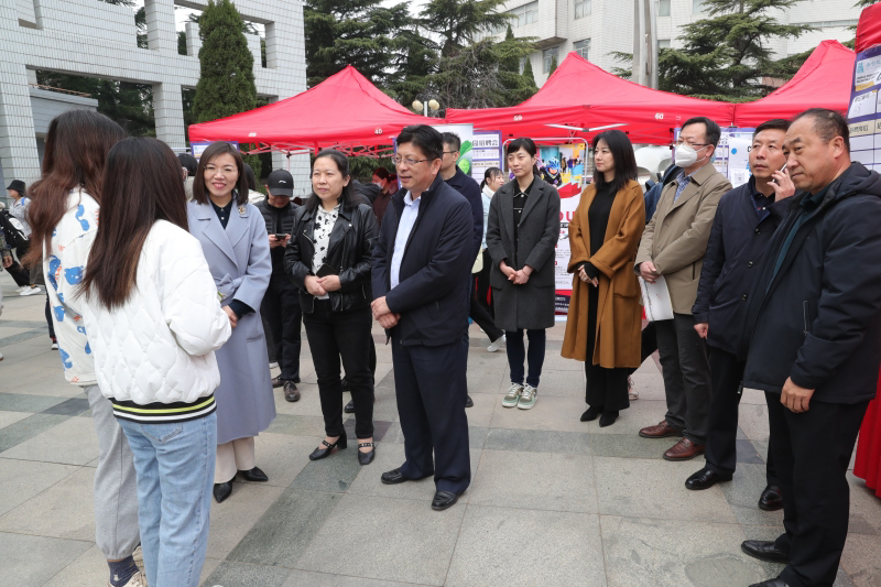招聘会现场,杨景波与参会单位和学生亲切交流,聆听用人单位对学校人才培养、就业工作的意见建议;询问关怀毕业生的就业意向与求职进展,鼓励学生树立正确择业观,积极把握后疫情时代的机遇,找准切入点更好更快地实现稳步就业,在各行各业为国家和社会贡献青春才智。他建议学院要通过开展春季促就业攻坚行动,聚焦当前促就业工作重点难点,把“走出去”和“请进来”相结合,挖掘开拓就业渠道,突出精准做实做细就业指导帮扶,加力加快推进就业工作进程。