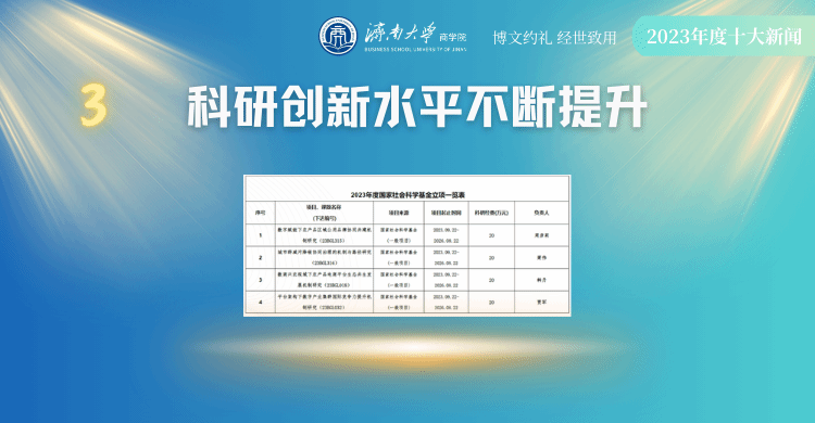 科学研究工作稳中有升,发表高水平学术论文47篇,顶级论文19篇,出版高水平学术专著2部。获批国家项目4项,省部级项目21项,其中重点项目1项。科研成果获得山东省社会科学优秀成果奖三等奖4项。成功获评山东省数据开放创新应用实验室。本年度纵向课题进账经费达279万元,横向课题进账经费近577万,共进账经费856万元。
