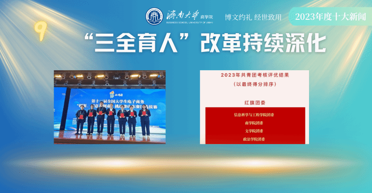 立足经管学科专业特点、时代新人培养目标,建立健全“三全育人”工作机制,提升学生思想政治工作质量,促进学生全面发展。学生在各项学术科研竞赛中表现优异,获国创省创立项18项,全国性学科竞赛决赛奖励44项。学院团委荣获校级五四红旗团委。张榕等10名硕士毕业生顺利获得南开大学、武汉大学、山东大学、对外经贸大学等名校博士深造机会。涌现出考研上岸率会计1902班54.83%和会计1905班51.61%,两个考研上岸率过半的班级!学院27.1%的平均深造率稳步提升,硕士毕业生年底去向落实率97.9%,本科学生年底去向落实率92.1%。