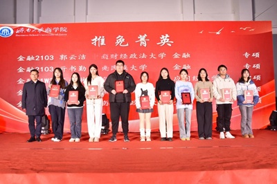 2021级学生李晓业作为推免菁英代表发言,分享了在学习过程中的感悟与方法,鼓励学弟学妹们勇于探索未知领域,并向给予自己帮助与支持的老师们表达了衷心的感谢。他提到,推免并非终点,而是一个全新的起点,号召同学们珍惜大学时光,合理规划学业与生活,努力实现自己的人生目标。学习标兵徐璐瑶分享了自己独特的学习经验,她强调保持专注与好奇心的重要性,鼓励大家积极参与课堂互动、学术讨论和科研实践。创新创业标兵代表孙梦涵表示,感谢老师的悉心指导与团队成员的紧密合作让她在创新创业的征途中不断突破。她鼓励大家保持对未知世界的好奇心,持续学习、敢于迈出舒适区、主动拥抱市场变化、积极参与创新竞赛和创业项目实践,用实际行动去探索和验证自己的想法。