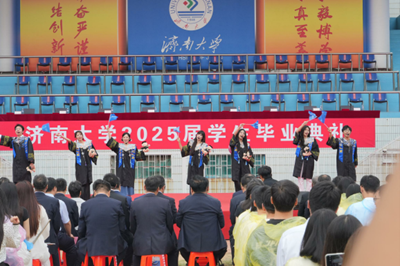 一朝济大人,一世济大情,万里山河泱泱,少年跃入人海,此间一别是终点,亦是起点,愿同学们奔赴山海,追逐星辰,同心筑梦,接力奋进,与济大共赴期待,与祖国共披霞光!