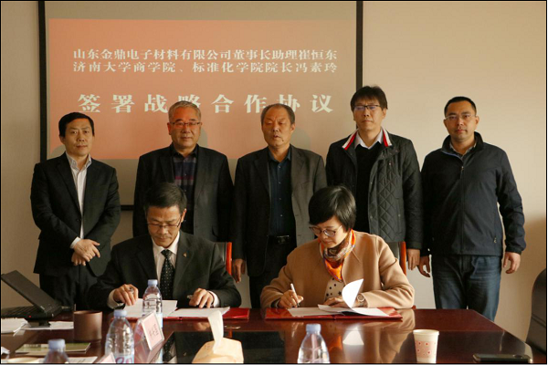 、标准化学院冯院长与山东金鼎电子材料有限公司崔总签定了校企战略合作协议。
