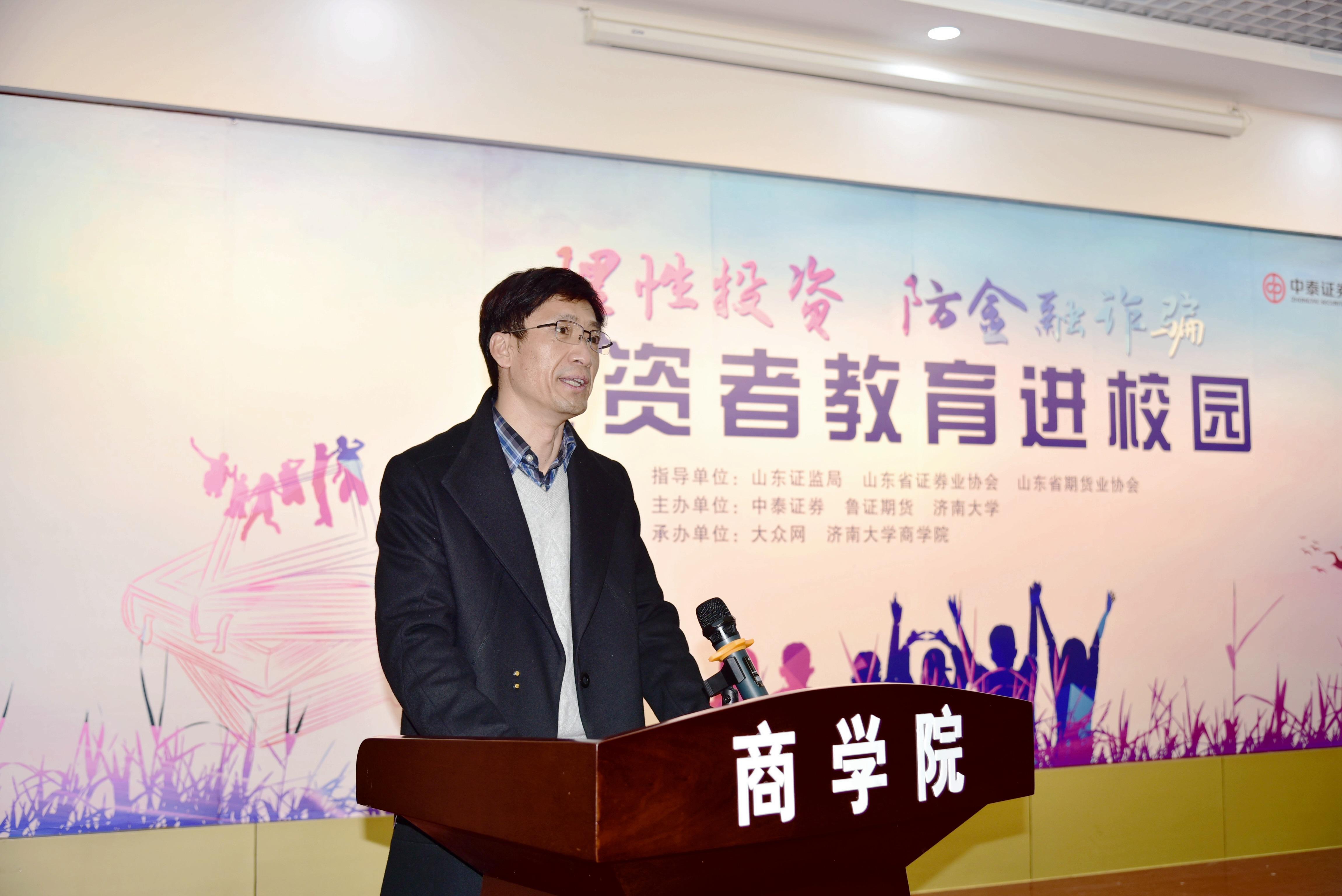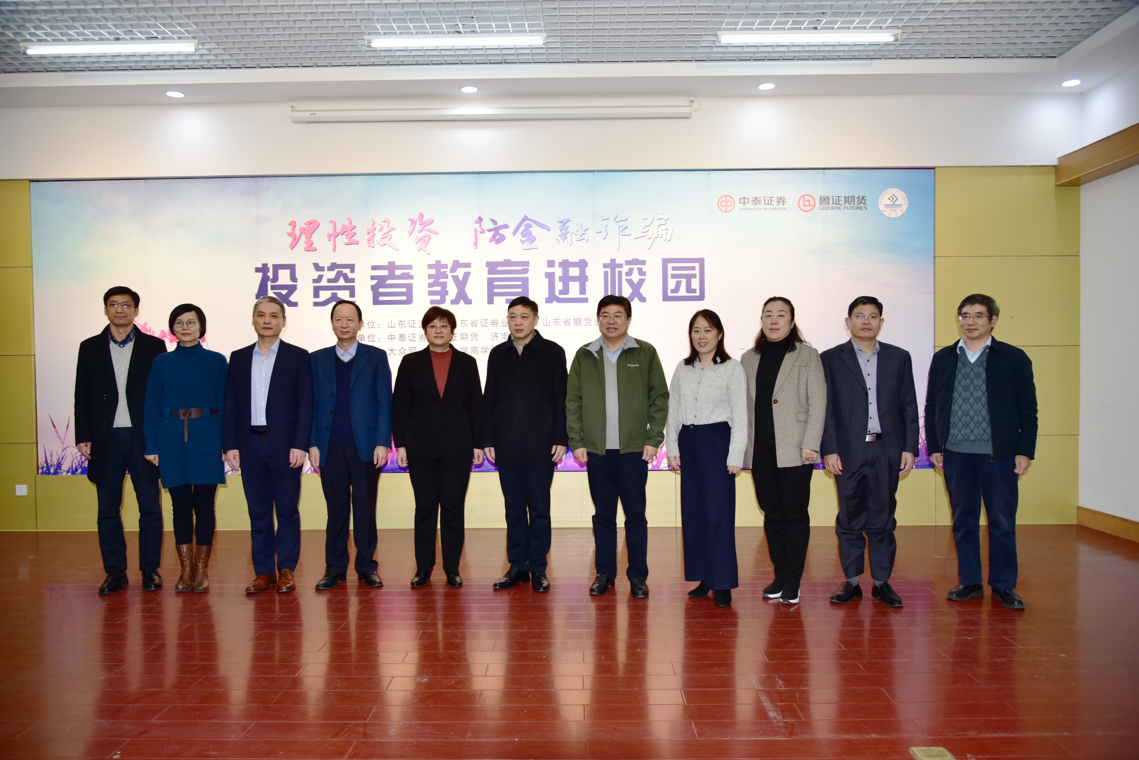 和中泰证券、鲁证期货共同主办的“理性投资 防金融诈骗”投资者教育进校园活动暨共建投教实训基地揭牌仪式在经管楼第一报告厅举行。山东省证监局投保处一级调研员胡文利、山东省期货业协会副会长季秋红、山东省证券业协会秘书长侯成伟、中泰证券经纪业务部副总经理刘心义、鲁证期货副总经理裴剑英、大众网财经部主任周海升、中国建设银行济微路支行行长王绍福,免费a片