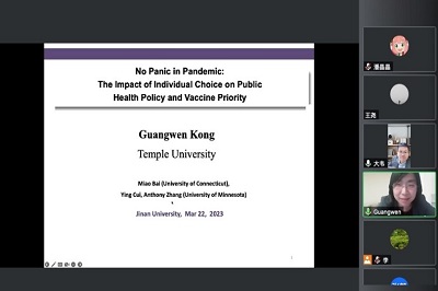 舜耕论坛“新年学术系列报告会”第五期如期举行。南加州大学孔广文博士应邀,围绕主题《大流行中没有恐慌: 个人选择对公共卫生政策和疫苗优先事项的影响》进行了学术讲座。本次论坛采用线上腾讯会议的形式,免费a片