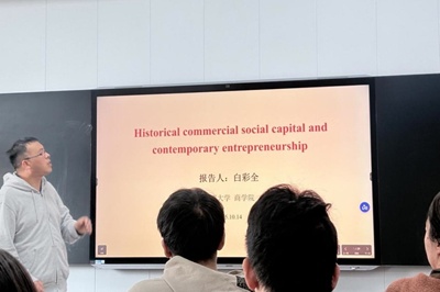 作了题为“Historical commercial social capital and contemporary entrepreneurship”的学术讲座。本次讲座由学院副院长刘洋、院长助理徐英杰主持,学院部分师生参加了此次学术交流活动。