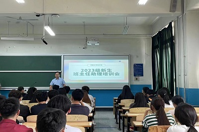 在舜耕校区经管楼208组织召开2023级新生班主任助理培训会。学院党委副书记、副院长袁海占,学院团委书记陈恺盛,2023级新生辅导员牟宇、朱孟斐,2023级全体新生班主任助理参加会议。