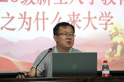 学院副院长刘毅做题为“来大学干什么”的报告,从学院发展历程、学科科研与教学平台建设、课程设置、学习要求、专业考研、就业等情况等方面向同学们做了详细介绍,帮助新生了解专业特点及发展前景,进一步激发学习兴趣,明确学习目标,并引导同学们树立责任意识,志存高远,努力在专业领域练就过硬本领,激励新生努力成为一个有品德、精理论、强实践的新时代青年。