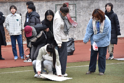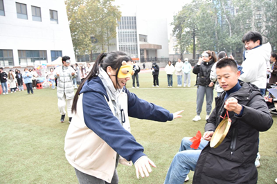 当然,欢乐的时光总是过得很快,很快就来到最后一个环节也是最激烈的环节--撕名牌大战,同学们四人为组,进行完美的配合,现场充满了欢声笑语,一张张名牌勾起了每个人小时候的回忆,现场的每个人仿佛身临其境,比赛在同学们的欢呼声中推向高潮。
