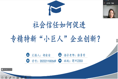 通过本轮汇报展示,经评委老师评审,学术赛道胡金金获得一等奖,程欣、孔祥娜获得二等奖,肖颖、谭小涵、陈泉文等同学获得三等奖。专硕赛道张文婷获得一等奖,张骞文、宁悦获得二等奖,刘佳欣、许睿、陈晴等同学获得三等奖。在学术赛道和专硕赛道上共评选出十二位获奖同学。