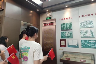 上午 11 时,实践团在解放阁前举行缅怀仪式。全体成员肃立默哀,向为济南解放献身的先烈致以崇高敬意。随后,成员们轮流分享先烈故事,从 “爆破英雄” 董存瑞到济南战役中的无名烈士,每一个故事都让在场者热泪盈眶。“站在解放阁前,我仿佛能听到当年的冲锋号。” 学生党员们都在默哀后表示,“作为新时代青年党员,我们必须接过先烈的‘接力棒’,让红色基因永不褪色。” 仪式最后,全体成员面向党旗重温入党誓词,誓言在解放阁广场上空久久回荡。