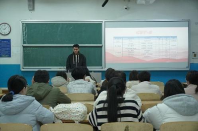 活动特邀在四六级考试中取得优异成绩的学长担任主讲人。学长结合个人备考经历,以精心制作的PPT为载体,围绕听力、阅读、写作、翻译四大核心题型,系统讲解备考策略、解题思路及时间分配技巧;同时通过提问互动引导现场同学思考,并针对共性问题进行集中解答。分享过程中,同学们认真聆听并记录重点,部分同学在讲解间隙与主讲学长进一步交流,明确个人复习方向。