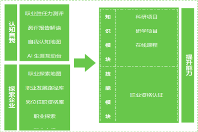 服务流程咨询预约→生涯测评→报告解读→名企虚拟工作体验/金融仿真实践项目→职业发展路径库/岗位任职资格库。
