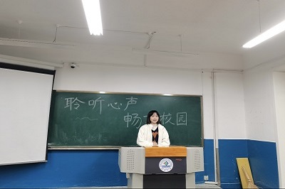 青年志愿者协会在舜耕校区文史楼组织了“聆听心声,畅言校园”演讲活动。本次活动正值国际大学生节,志愿者旨在通过演讲的形式,为同学们提供敞开心扉、畅所欲言的机会,搭建起同学们开阔视野、展现自我的平台。