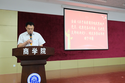 优秀共产党员、优秀党务工作者、先进党支部的决定。安强身等15名同志被授予“优秀共产党员”称号,薛珑等5名同志被授予“优秀党务工作者”称号,会计学系党支部等4个基层党组织被授予“先进党支部”称号。学院领导班子为受表彰的组织和个人颁发了荣誉证书并赠予书籍《平语近人》,全场掌声雷动,师生深受鼓舞。