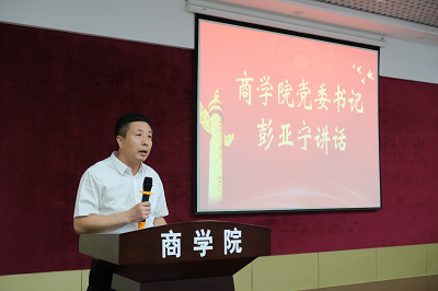 学院党委书记彭亚宁总结讲话。他向获得表彰的组织和个人表示热烈的祝贺,向一直以来在学院党建工作中兢兢业业、勤勉工作,为推动学院党的建设和各项工作做出持续贡献的党支部和同志们表示敬意和感谢。他表示,近两年来,在学校党委的坚强领导下,学院党委始终坚持以习近平新时代中国特色社会主义思想为指导,围绕落实学校第四次党代会精神和立德树人根本任务,积极推动党的二十大精神在全院师生中入脑入心,持续推动全面从严治党向纵深发展,有力推动学习贯彻习近平新时代中国特色社会主义思想主题教育走深走实,在党的建设、教书育人、科学研究、社会服务、人才培养等方面取得了新成效。他强调,为党庆生,最好的方式就是把党建设得更加坚强有力,让学院党委更有凝聚力、战斗力。学院党的建设工作中涌现出了一批优秀代表,表彰先进旨在树立标杆,激励全院师生更加奋发有为,更好建功新时代。最后,他提出三个方面意见:一是坚定理想信念,强化理论武装,高标准高质量开展主题教育,扎实推进主题教育见行见效;二是持续强基固本,高标准严要求,不断牢固基层党支部这一战斗堡垒,不断促进学院党建工作提质增效;三是提高政治站位,增强使命担当,更好发挥共产党员先锋模范作用,持续推动学院上下担当实干、干事创业氛围更加浓厚。