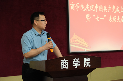 在经管楼报告厅隆重举行“七一”表彰大会。学院领导班子成员、各党支部书记、各系主任、各职能部门负责人、全体辅导员、学院2023年度新发展党员、部分入党积极分子代表以及受表彰的组织与个人参加会议。学院党委副书记、副院长袁海占主持会议。